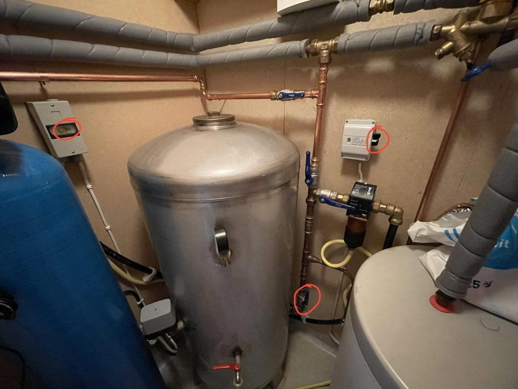 Tænd for vand i teknikrummet (indgang til teknikrum fra baggangen) ved at dreje det nederste blå håndtag til at være i samme retning som rørene (se billedet nedenfor)